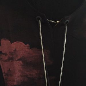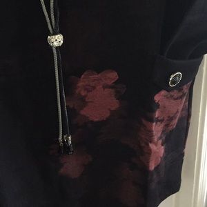 Black long sleeve with pink (sort of like a mauve/faded pink) print. Comes with a removable sliver and black accent necklace to add some sparkle and character. Two adorable pockets with button detail. The material is thick and long enough to be a tunic. Would look great with leggings. Brand new with tags. Cotton and polyester.