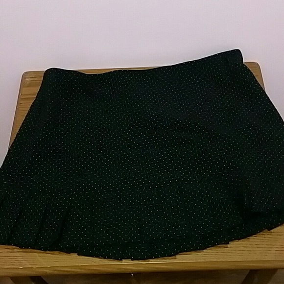 Polka dot skirt with pleated bottom. Black with pale pink polka dots. Has belt loops and zipper closure. Juniors size 13. In good condition no rips or stains. Is short (15 inches long).