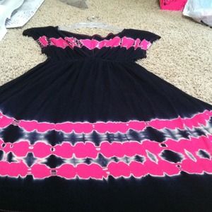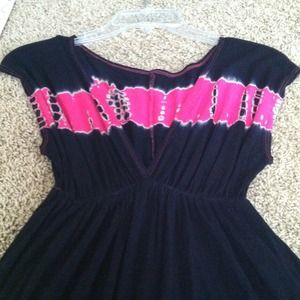 Black and pink v-neck mini dress