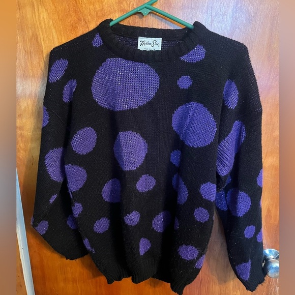 Black and purple polka dots vintage 80’s helen sue sweater size 8 small med