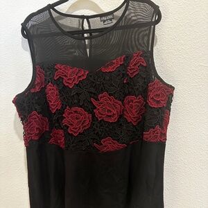 Plus size Sleeveless Mesh top Red and black flowers