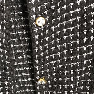Black and silver cardigan. Great for the work place! Has crystal like buttons with a hit of gold. Never worn.