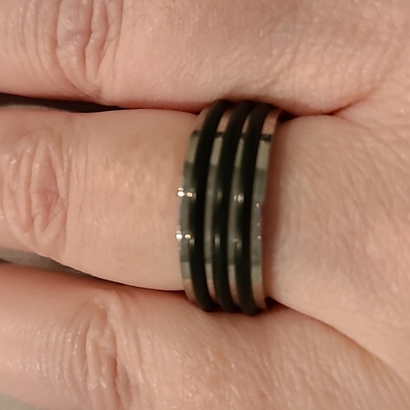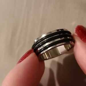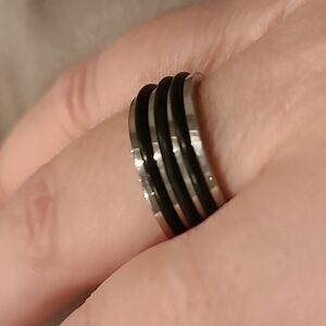 Black and silver stainless steel ring