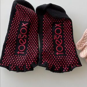 Stylish black and pink toe socks with unique designs. Perfect for comfort and style.
