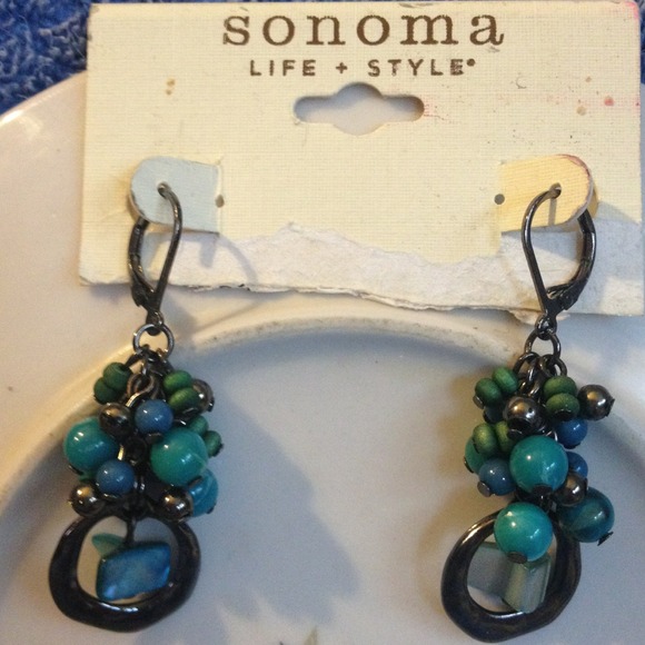 Black and teal dangle earrings.