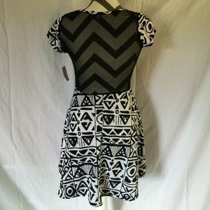 Black and white Aztec skater dress. Exposed back with sheer overlay. New with tags