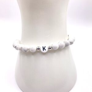 Natural stone jewelry Unisex Men’s male Women’s female black and white Initial letter K monogram natural howlite stone stretch bracelet New with tags See pictures for measurements
