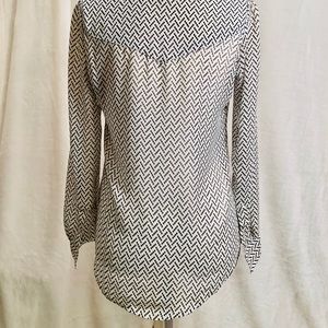 This blouse is black and white. Two pockets. Worn only a few times. Perfect condition.