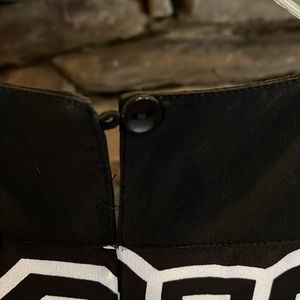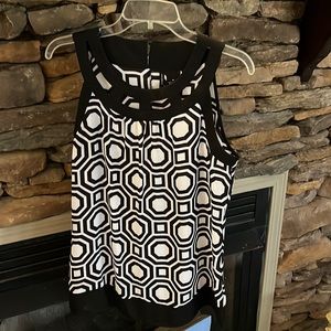Black and white dress blouse with octagon print and cut out neckline. Also has a button closure at the back of the neck. This is in a non-smoking home.