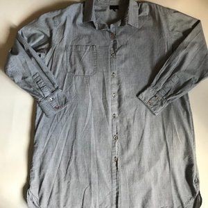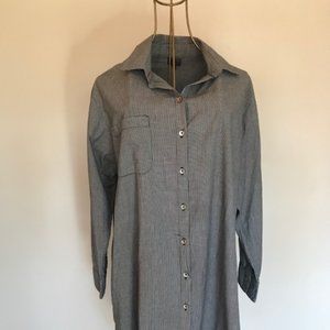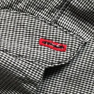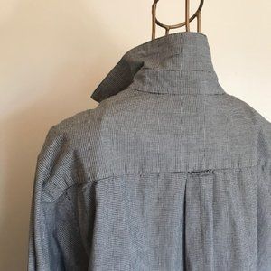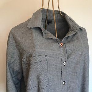 Staples, 100% cotton long tunic shirt. Black and white micro check print, with red details on a few button holes. Great pockets in side seams (I love pockets). Size XL. Previously worn in excellent shape.