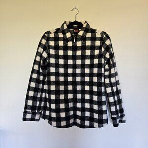 Black and white checkered fleece, zip up jacket.