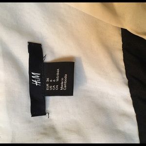 Black with off white around the color. One button in the back. Three quarter sleeves. A little above the knee. Very good condition. Chiffon.