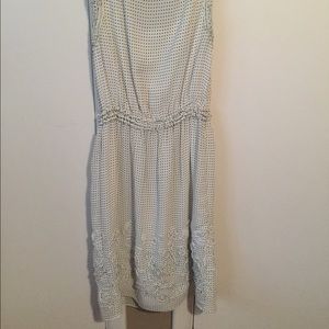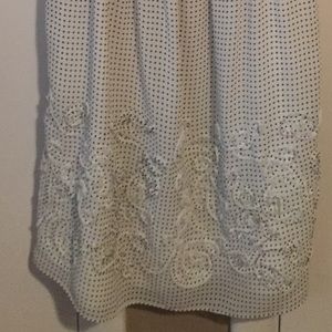 Super pretty black and white polka dot and detailed dress. Only worn once! Has great detail on the sleeves and on the bottom of the dress. I am 5"3 and the dress hit me right above the knee.
