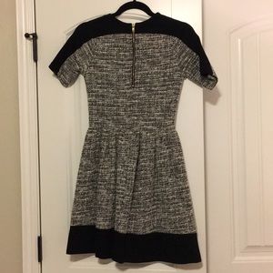 Super cute black and white dress from Nordstrom! Hits just above the knees and goes perfect with black leggings for winter. Gold zipper on the back gives I️t extra detail! Super comfortable and flattering. Size SMALL, fits like an XS.