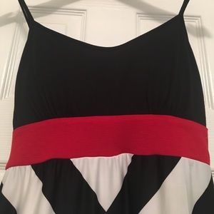 Black and white dress with red accent