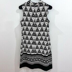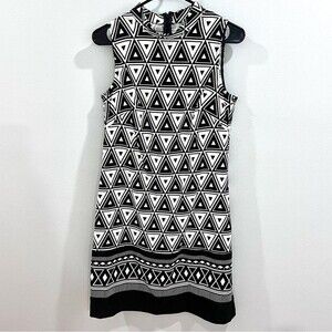Black and white geometric print mock neck shift dress size 6