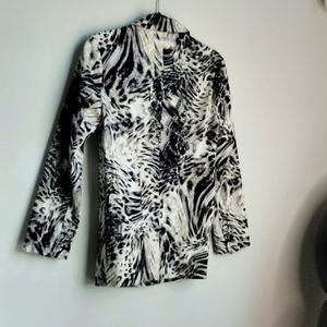 Gabriella MOLINARI black and white graphic Blazer jacket. Size 6. New without tags pockets are still tacked shut. Stretchy fit. 17 and 1/2 in across chest