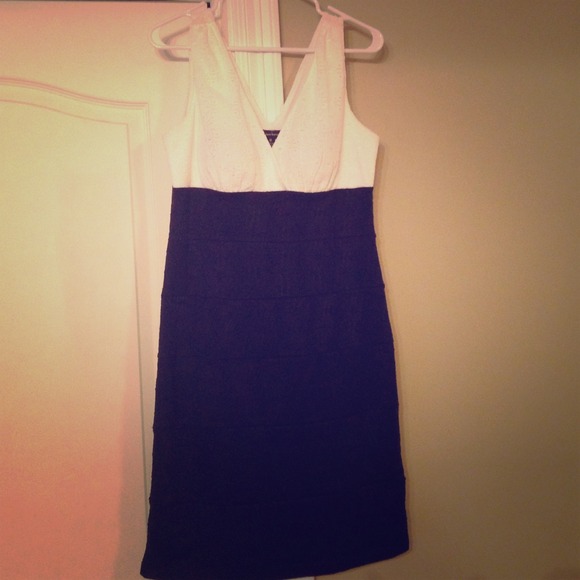 Black and white lace form-fitting dress
