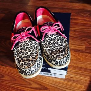 Black and white leopard Sperry Topsiders size 5