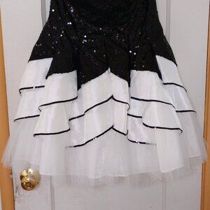 Fantastic black and white sequinned masquerade dress.  Never worn, size 5/6