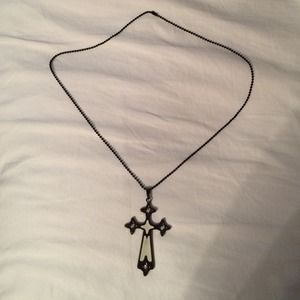 With 4 multi cut rhythm rhinestones at the 4 ends on the obsidian, black necklace chain;