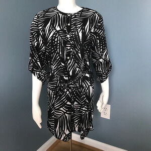 Black and white palm print belted tunic size small