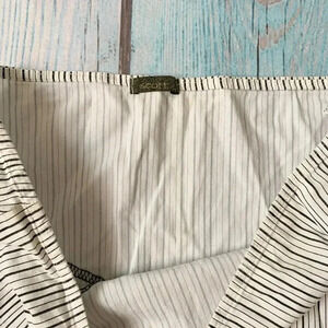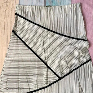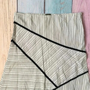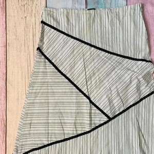 Black and white pinstripe skirt. Size medium. And great preowned condition. Cotton and spandex blend. No flaws. Zipper closure on the side.