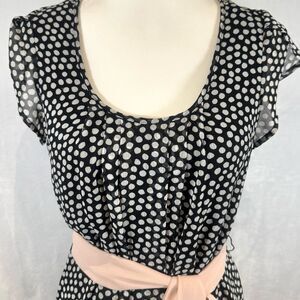 Black and white polka dot dress with blush sash size small