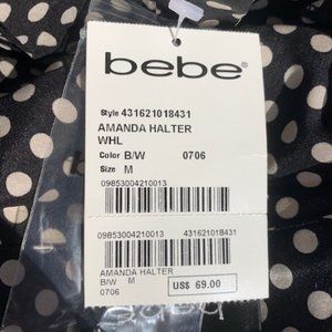 New! Bebe Amanda halter. Black and white polka dots with tie at waste.