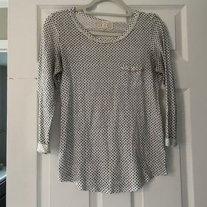 Black and white print lightweight blouse with slight coral thread on pocket XS