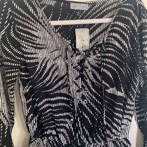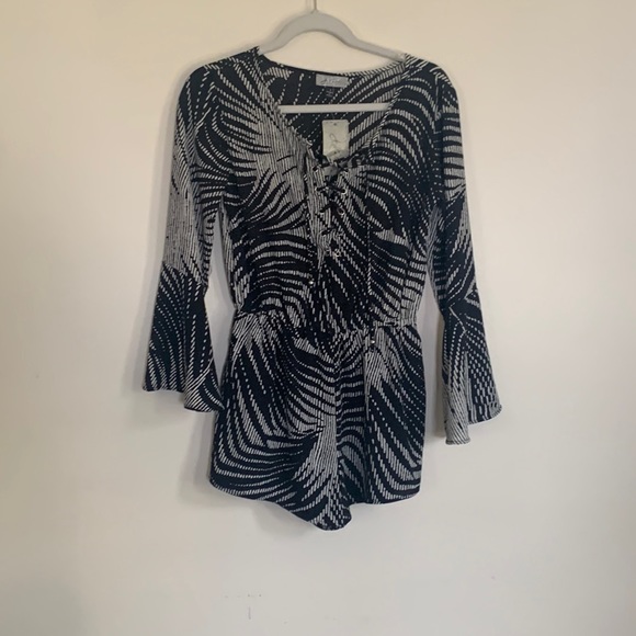 Black and white romper with tie strings and bell sleeves