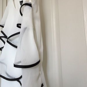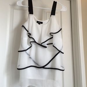 Very pretty flowy blouse. Unique ruffle design and flattering on. Side zip. Size m. Fits s-m.