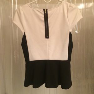Black and white. Size medium but fits like a small. Very cute and in absolute perfect condition. I've worn it twice.