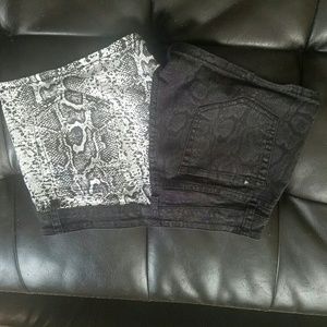 Black and white snake skin shorts.