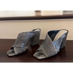 Black and white snakeskin textured slip on heels or booties or wedges (idk)