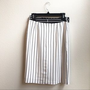 Black and white stripe skirt with bow from Ann Taylor, worn once! When worn, the skirt reaches my kneecaps (I’m 5’6”). This is a gorgeous piece that goes from the office to dinner with friends seamlessly! So flattering and versatile.