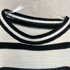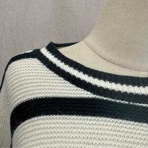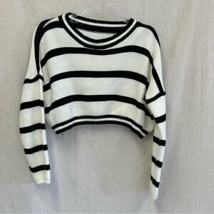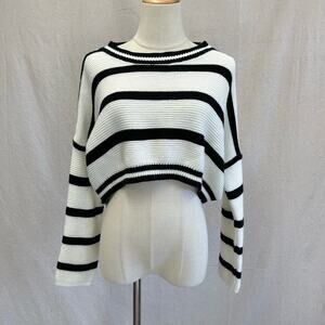 Black and white striped cropped slouchy knit sweater dolman sleeves Small-Medium