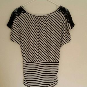 Fits towards bottom of torso with room to move in the top section. Lace-like sleeves.