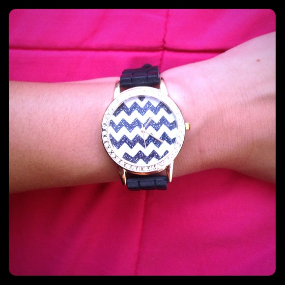 Black and white striped watch.