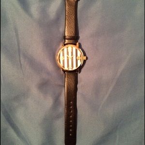 Black and white striped watch with black band. Nautical detail and gold hardware. Excellent condition!