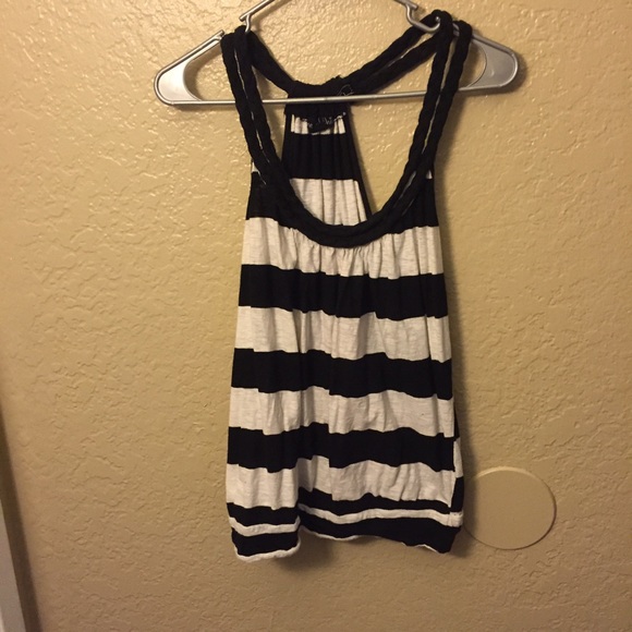 It's a short black and white top. Still in very good condition. Only wore it twice or three times. The white is still bright and so is the black.