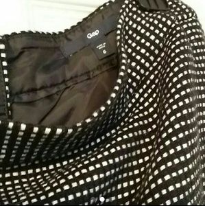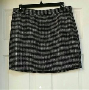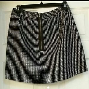 Gap black and white wool mini skirt. Exposed zipper in back. 15.5 inch across the waist x 16 inch length. In excellent condition.