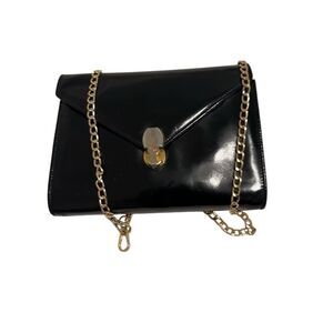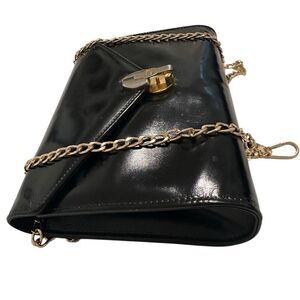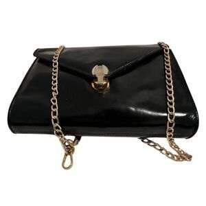 Patent leather, I bought it as a clutch, a non bland beauty gold chain is added, gorgeous bag, good for everything and daily
