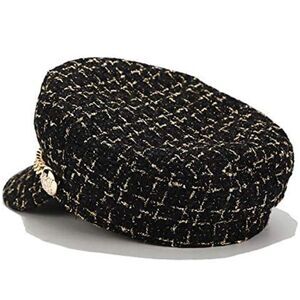 Plaid Tweed Newsboy Baker Boy Hat Captain Sailor Fisherman Hat Peaked Beret with Chain