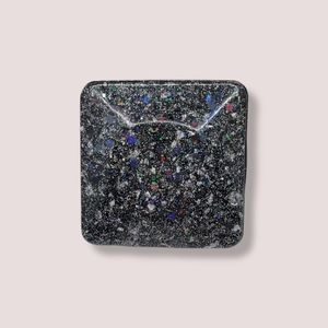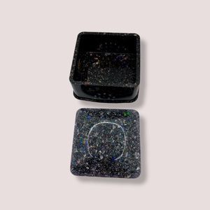Black and Silver Glitter Handmade Resin Acrylic Trinket Box, Catch all Tray approx 3 inches wide and 1.5 inches tall
