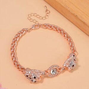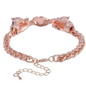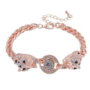Black and White Austrian Crystal Enameled Tiger Rose Gold Adjustable Bracelet
