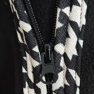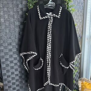 Black and White Zip up Cape/Poncho with Houndstooth trim