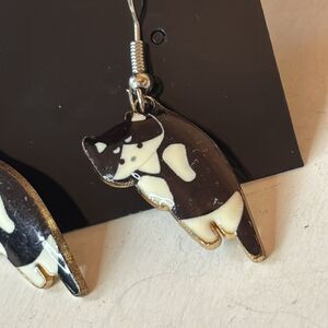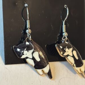 Black and white pair of dangling kitten fashion earrings cute cat lady style
