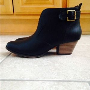 Black booties with a 2 inch heal and a side buckle size:6 1/2 brand:apt9 condition: brand new never worn
