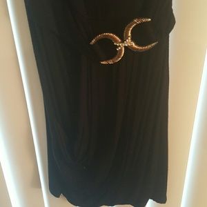This dress is perfect for any occasion. It is flowy on the bottom and has a cute metal piece.